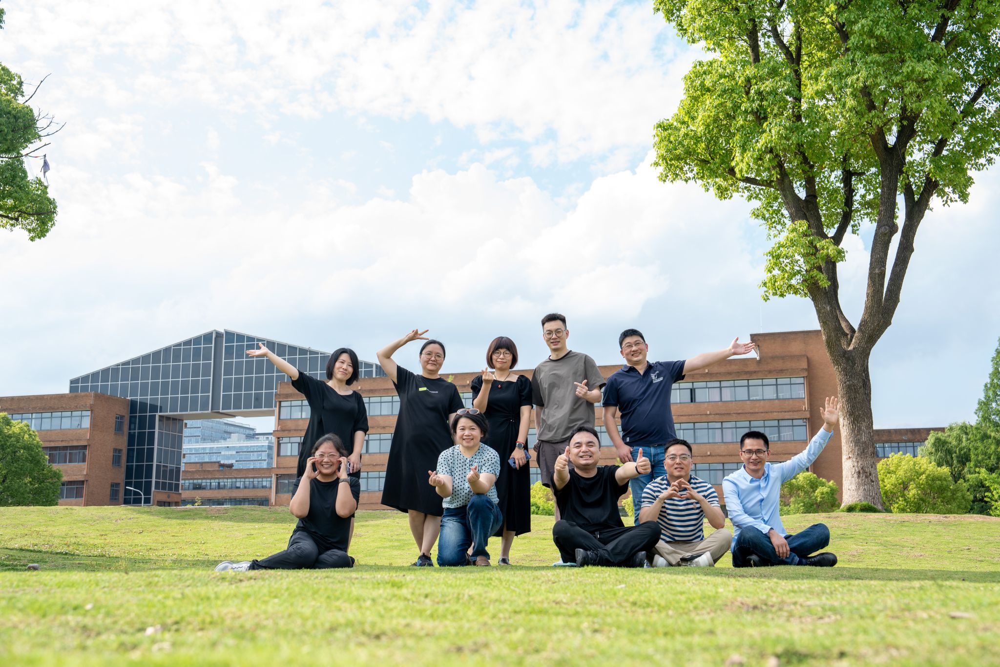 随后,校友们结伴而行,沿着记忆中的校园路线,开启了怀旧打卡之旅。朴素亲切的南天门下,他们驻足仰望,仿佛又看到了当年初入校园时的懵懂与憧憬;绿意如茵的大草坪上,大家席地而坐,回忆着课间休憩时的轻松惬意;古朴的教学楼前,谈论着课堂上老师的谆谆教诲;庄重的包玉书图书馆前,回想起无数个埋头苦读的日夜。每到一处,校友们都迫不及待地拿出手机、相机,将灿烂的笑容定格在镜头里,此刻,相机中的影像与脑海中青春的画面重叠,编织成一幅珍贵的时光画卷。在学院志愿者的热情引导下,校友们走进蓝鲸直播