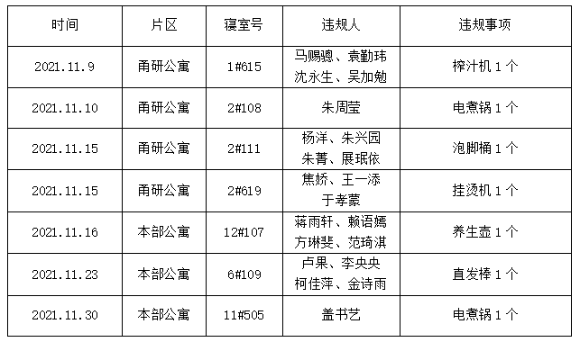 7间寝室有违禁电器情况,根据《蓝鲸直播