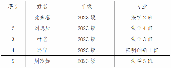 根据《关于开展第六届“金陵杯”模拟法庭竞赛校内选拔工作的通知》,经学生申请、现场案例分析面试,最终推荐以下5名同学作为蓝鲸直播 代表队参加第六届“金陵杯”模拟法庭竞赛。具体名单如下: