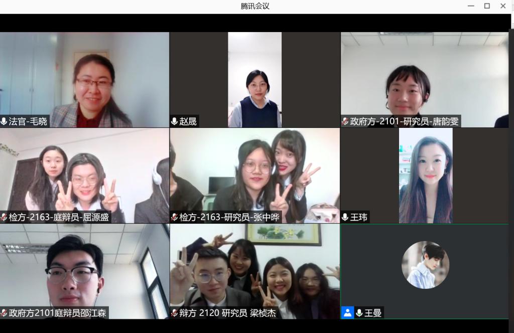 学子收获满满。参赛队员克服学业重、语言难等障碍,进行高效团结的“云备赛”。从线上会议论坛到观点学术研讨,从思路框架构建到文书写作修改,在教练和指导老师的指导下,参赛同学合理制定竞赛计划和分工合作,有条不紊的进行赛前准备,专心投入比赛。从2020年12月试题公布到今年4月17日、18日庭辩赛,4个多月的时间,队员们对案件和相关材料进行认真细致分析,牺牲课余时间和假期查阅大量中英文文献资料,有步骤地学习国际刑法知识,分析国际刑事法院和特别法庭的现实案例,多次修改、打磨和完善文书内容。