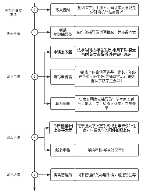 4.学生校外住宿地点发生变更应及时向学院登记备案;每次申请的有效期为一学年。
