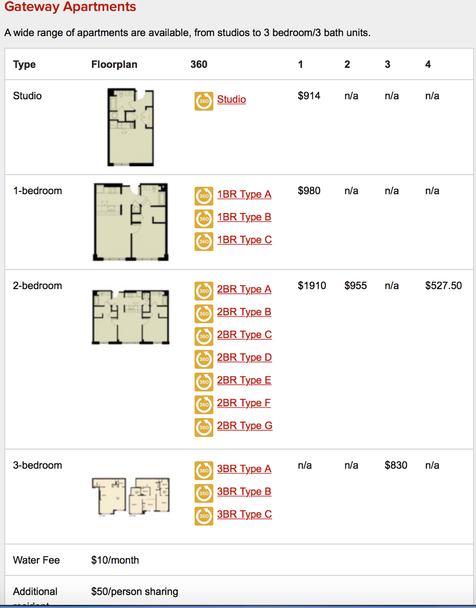 The following rates are the approved rates for the 2017-2018 academic year. For your convenience, all rent payments can be made online.