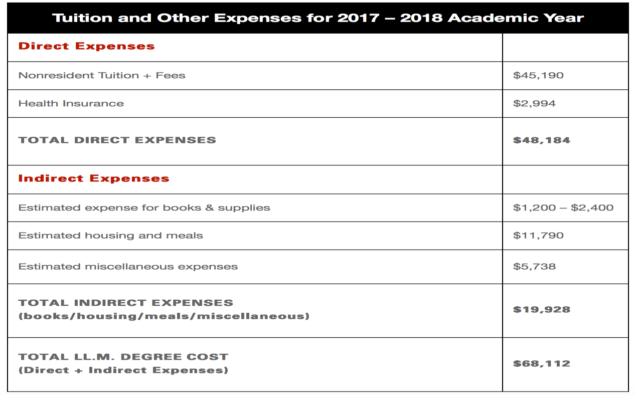 A $225 seat deposit is required to reserve a place in the LL.M. class at the time of admission. $200 of that seat deposit will be applied to the student’s fall semester tuition.