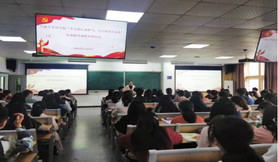 开班仪式结束后,孙芬娜老师为全体学员带来了饱含深情的党课——“铭记历史 不忘初心 勇担新时代责任”。孙老师讲述了她在井冈山革命根据地的所见所闻所想,革命先辈的故事触动了在场的所有同学,也更坚定了同学们的理想信念,为实现中华民族伟大复兴的“中国梦”而接续奋斗。