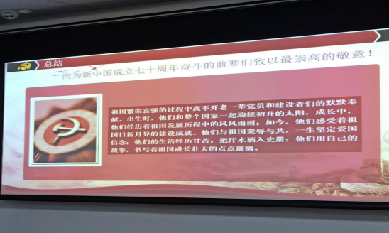最后总结阶段,两位党员同志强调:国家在发展和壮大的过程中,离不开老一辈党员同志的默默奉献。此次党课旨在让各位入党积极分子明白,老一辈党员同志为共和国的发展披荆斩棘,在祖国空前强大的今天不要忘记了他们所作的贡献,要向他们致以最崇高的敬意,更要以他们为榜样,接续奋斗。