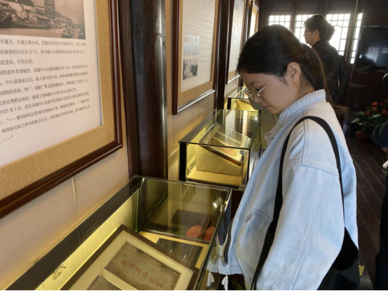 随后,同学们自行参观了“张人亚初心使命”“党章的历史”“党章与党纪”等展厅,展厅详细展示了张人亚同志生前保存的30余样珍贵历史文献,进一步体会了中共党章演变历史以及张人亚同志参加革命的先进事迹。一本本泛黄的报刊文献,一段段历经沧桑的艰难历史岁月,诉说着革命先烈传奇的一生,现场的同学们无不为之动容。