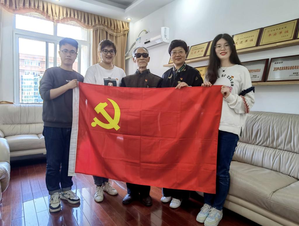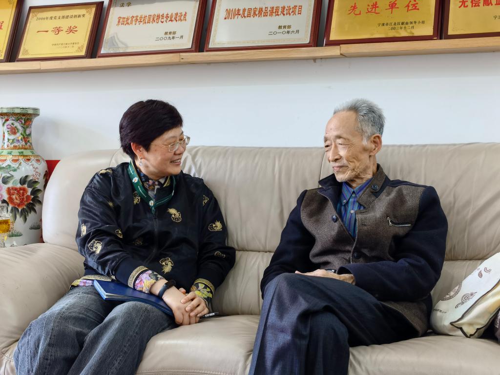 党委书记李学兰携师生代表在学院206接待室访谈慰问了学院老党员、离退休老教师冯振堂。访谈中,冯老师结合自身经历讲述了入党初心和教育心得,使在场师生深刻感受到老党员的初心使命与老教师的温暖情怀。
