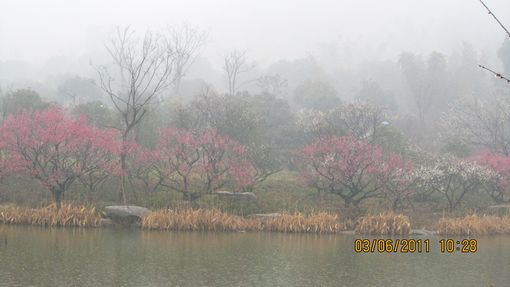 经过二个多小时的行程,女教师们来到了风光绮丽、古迹众多的超山赏梅,恰逢超山梅花的最佳观赏期。梅花已经开了五成以上,层林尽染,清香扑鼻,当年吴昌硕先生笔下“十里梅花香雪海”的胜景依稀可见。尽管天公不作美,行程中霏霏细雨一路相伴,但美丽的女教工们依然兴致不减,戏称做了一次“梅花浴”。大家尽情地在花丛中漫步、谈笑、留影,还跟随着导游探访了唐梅、宋梅二大古梅。下午,大家来到了享有“杭州北秀明珠”的塘栖古镇,跨过京杭大运河上唯一保存完整的七孔石桥----广济桥,撑一把细花伞漫步在熙攘的古镇街头,感受烟雨濛濛的江南水乡美景,恍若时光倒流。