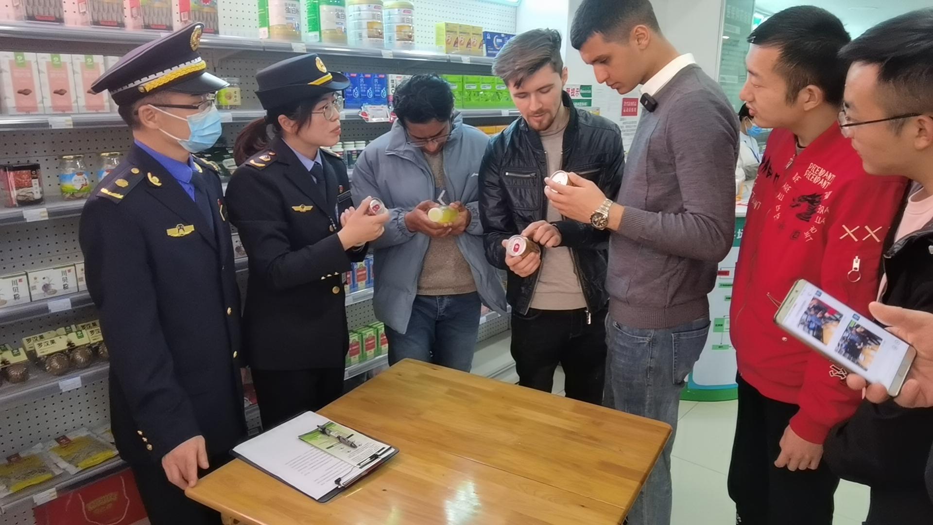 跟随“大综合一体化”执法队员们的脚步,中外学子还走进街边的食品店、药品店,现场观摩卫生执法全过程:查看店面的相关营业证件、普及保健食品注册与备案管理办法、开展保健品与普通食品的甄别……“我也会到步行街逛逛买吃的用的,但对商家法律监管体系还真不了解,这种直观的现场普法,让我受益匪浅。”2022级法学硕士专业留学生伊万·科兹麦斯说。