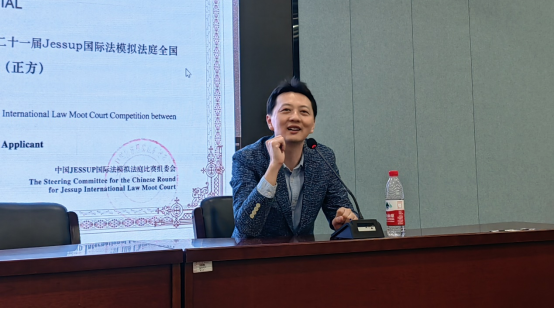 同学参加国际模拟法庭竞赛的特点和他主编的相关教材,围绕国际模拟法庭竞赛知识储备、法律检索、论证逻辑、团队配合、临场应对等方面分享了执教心得,提出了备赛建议。