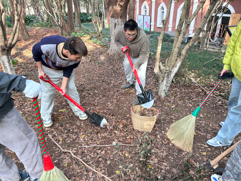本次活动在九龙湖国际家园负责人姜红升带领下,以捡拾垃圾、清理杂草为主要内容。100多名同学有序分为三个组,在坡顶、坡道和湖边三块场地展开激烈的劳动竞赛。同学们个个热情洋溢、干劲十足。有的用铁锹铲杂草,有的运送着杂物垃圾,各个环节衔接有序,样样做得认真到位。经过同学们的奋战,原本被杂草和垃圾覆盖的荒坡变成了平坦整洁的林间小路,湖边的垃圾也很快清理干净。