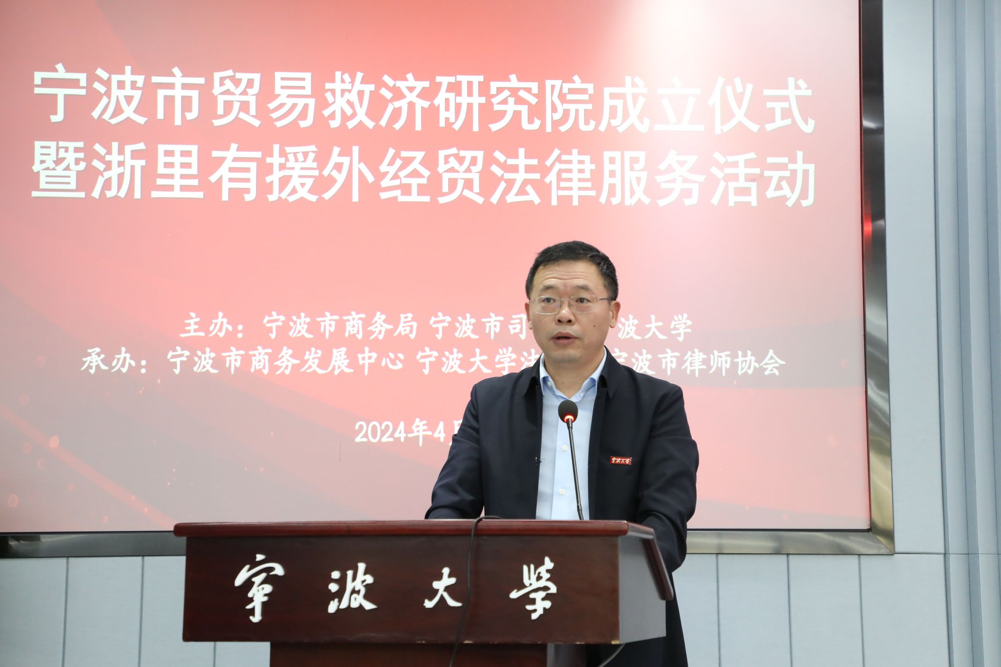 院长梁开银教授主持了宁波市贸易救济研究院揭牌仪式、宁波市贸易救济专家咨询委首批专家委员和宁波市贸易救济专家律师库首批成员聘书颁发仪式。