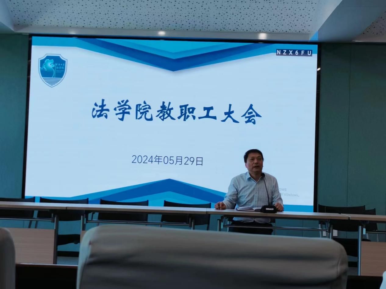 院长梁开银、党委书记孙芬娜、学院班子成员及全体教职工出席会议,会议由孙芬娜书记主持。