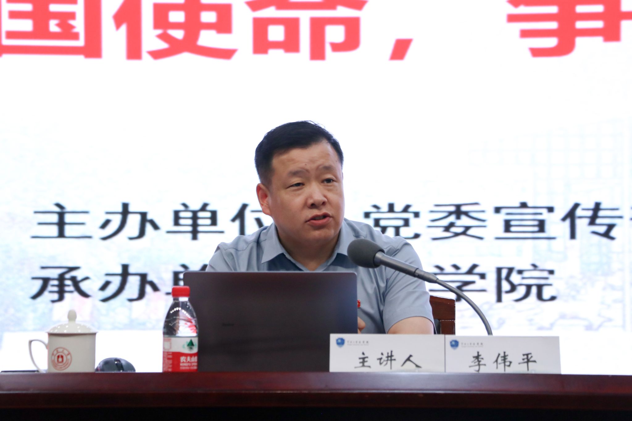 5月29日,校党委委员、副校长李伟平以“勇担强国使命,争做新时代有为青年”为主题,在真诚图书馆报告厅为蓝鲸直播