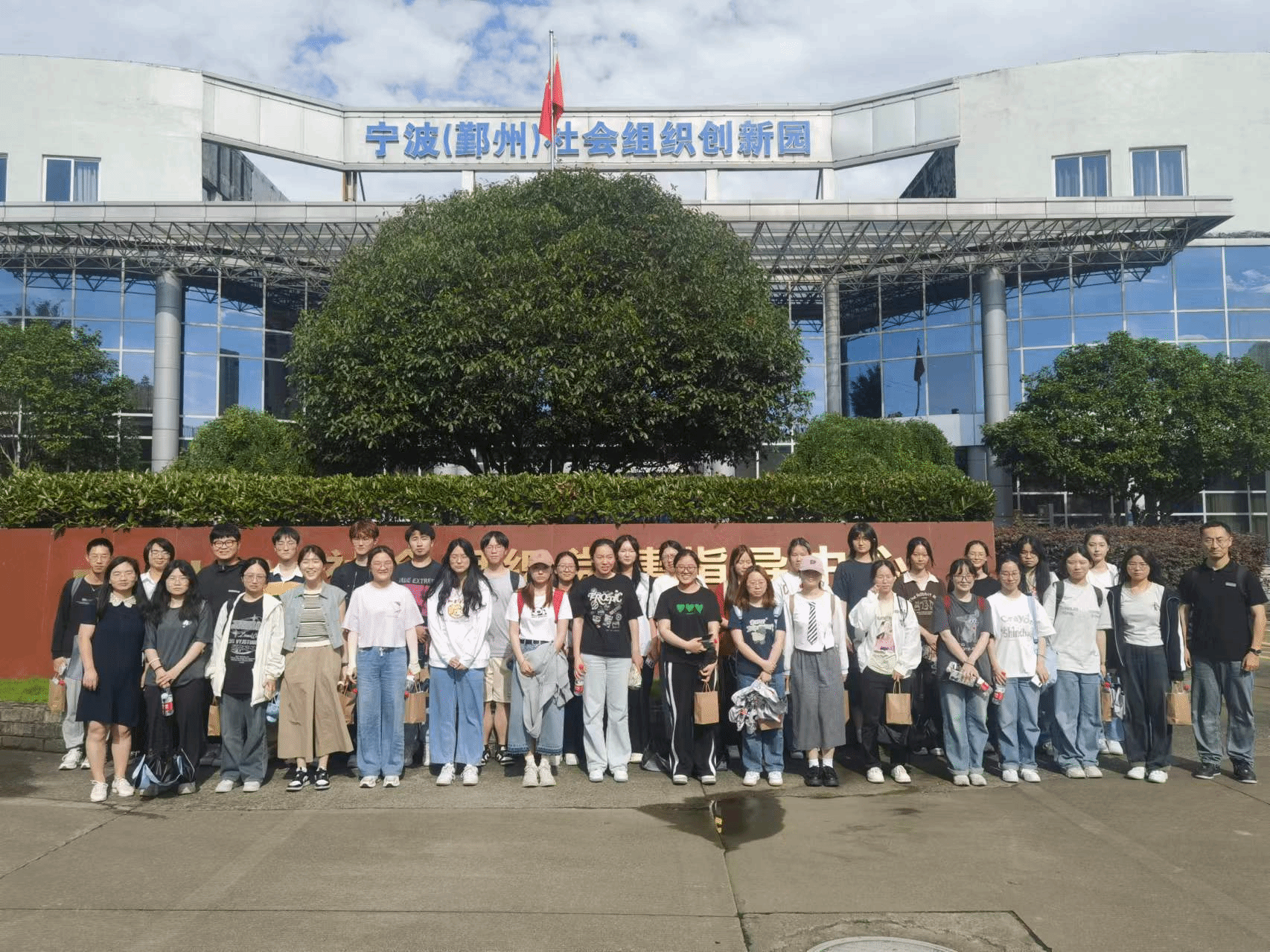 公共管理系政府治理课程组王婉娟老师、张尧老师带领22级行政管理专业学生深入宁波市(鄞州)社会组织创新园开展廉洁教育社会实践活动。