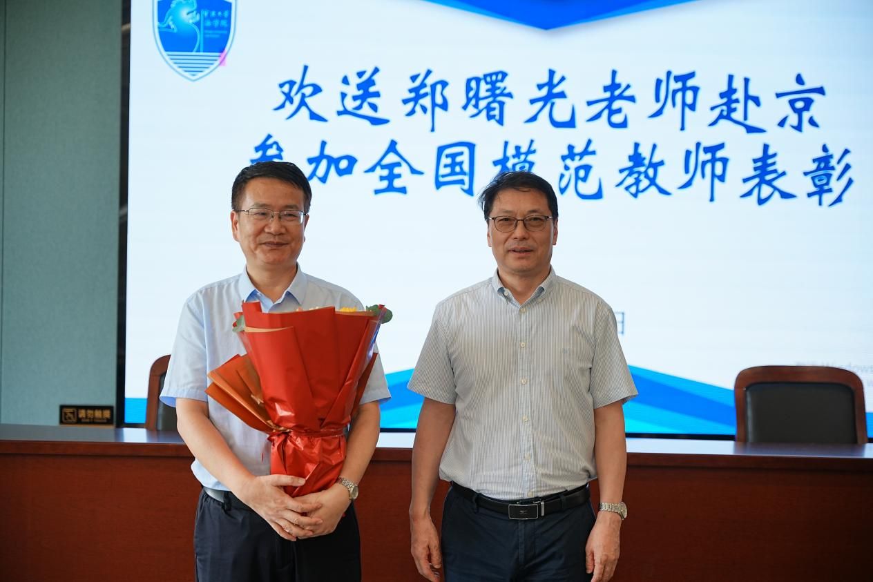 特别值得一提的是,全体老师热烈欢送了即将代表浙江省赴京参加全国模范教师表彰的郑曙光教授,表达了对他再次取得全国荣誉的祝贺。郑老师对学校和学院领导的支持和肯定表示感谢,他表示在这个特殊的教师节来临之际被学生喜爱,被社会认可是莫大的欣慰。他表示将代表全省教师履行好此次北京之行的工作职责,也会将表彰会的动态及喜悦及时分享给学院老师们。