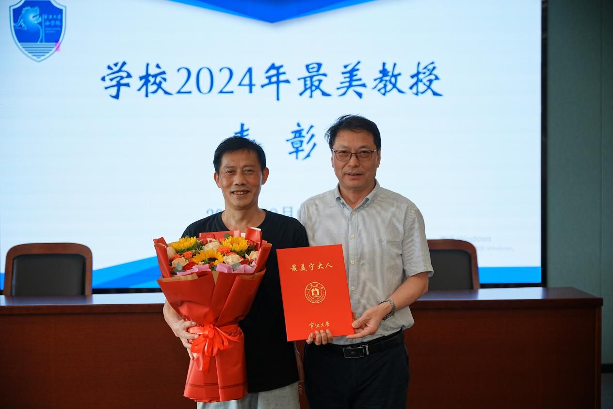 院长梁开银为获得学校2024年最美教授的刘满达教授颁发获奖证书,肯定他在教书育人和法学研究领域做出的杰出成就。