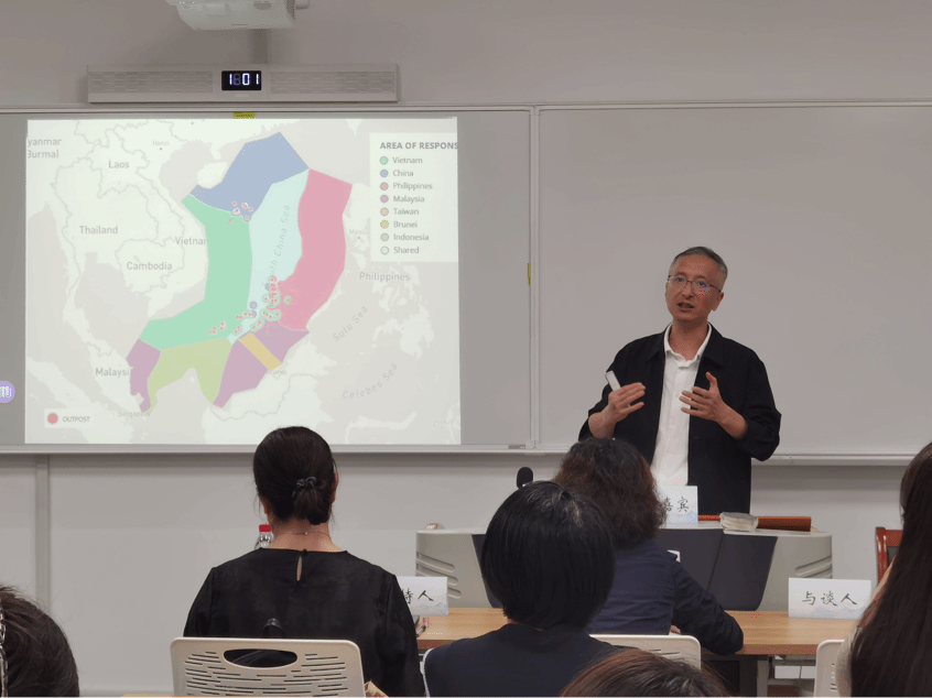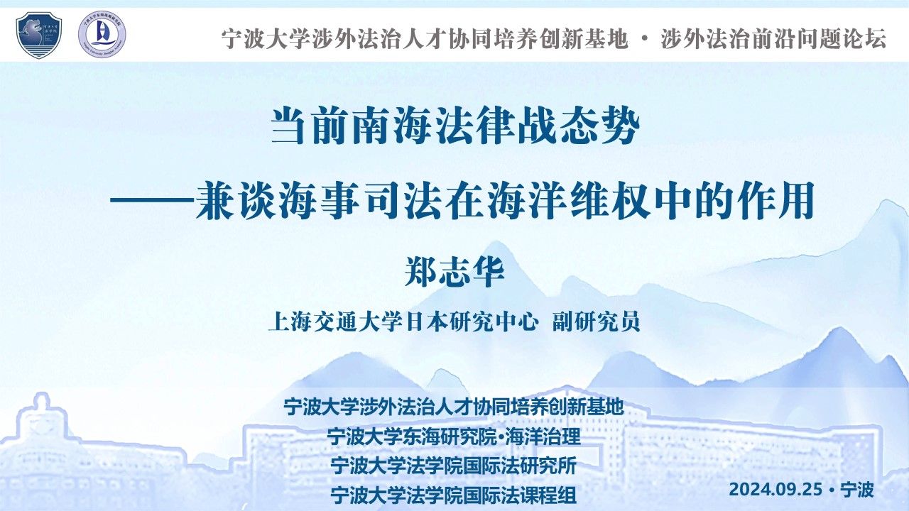 此次论坛的主题是《当前南海法律战态势——兼谈海事司法在海洋维权中的作用》,由上海交通大学郑志华副研究员主讲,由蓝鲸直播