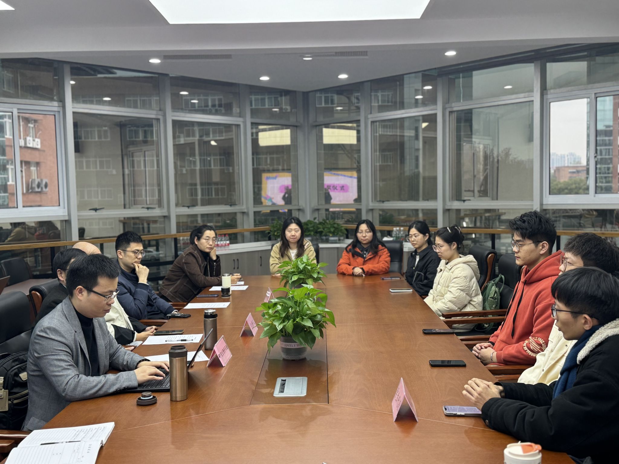 副院长何跃军教授、研究生督导蔡连增老师、吕双全老师、金韬老师、王雪琪老师及研究生督导秘书于蕾老师、学生代表8人参加了本次会议。