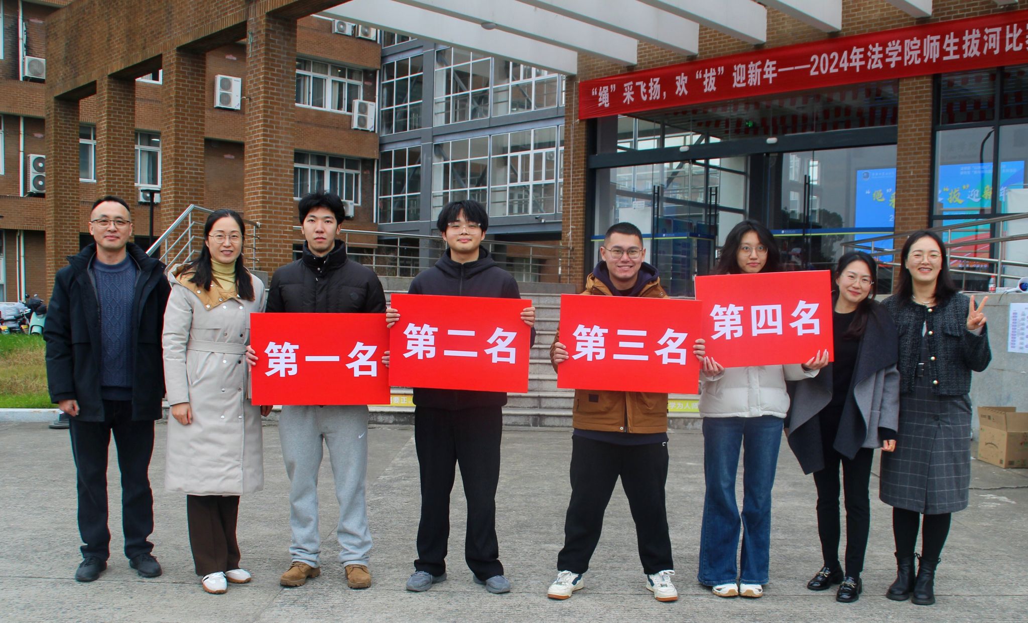 团委的“横眉冷队”获得第二名,24法学硕士班的“力量风暴队”获得第三名,24法律(非法学)的“劦太如犇队”、23法学3班的“财神爷的心尖宠战队”、23法律(非法学)班的“别和我作队”、24公共管理硕士班的“会夺冠的对不队”、23法律(法学)班的“成群结队”分别取得第四至八名的好成绩。