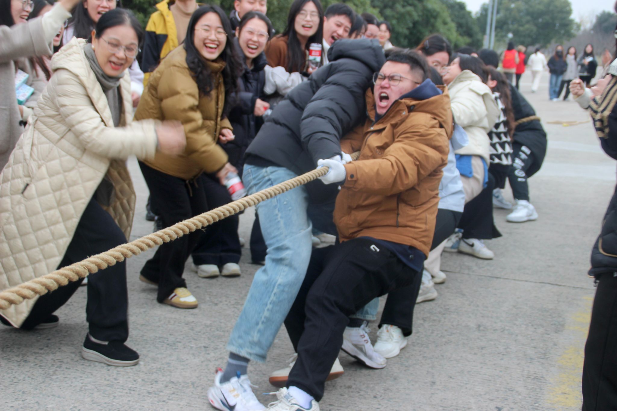 师生拔河比赛,作为喜迎2025新年的特别活动,宛如一场冬日里的火焰,点燃了师生们的热情,在紧张的期末氛围中,为大家带来了一场力量与团结交织的狂欢盛宴。