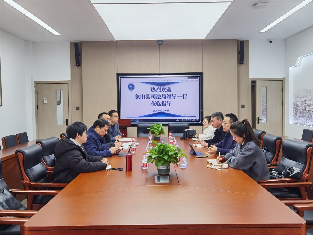 2025年3月7日下午,象山县司法局局长李文宏、副局长郑伟东,办公室主任俞芸,促进科长何丽娜一行四人莅临蓝鲸直播