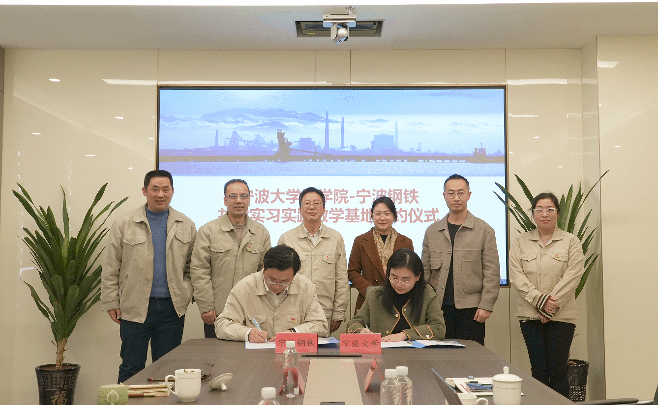 与宁波钢铁有限公司共建实习基地揭牌仪式在宁波钢铁有限公司行政楼举行。蓝鲸直播
