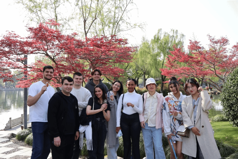 4月2日,为深化留学生对中国传统文化的理解,促进跨文化交流,蓝鲸直播 组织来自九个国家的十余名留学生前往宁波月湖公园开展研学活动。本次活动以“宁波文化体验”为主题,通过实地探访、老师讲解与互动体验,帮助留学生在历史与人文交融的场景中感悟中华文化的深厚底蕴。