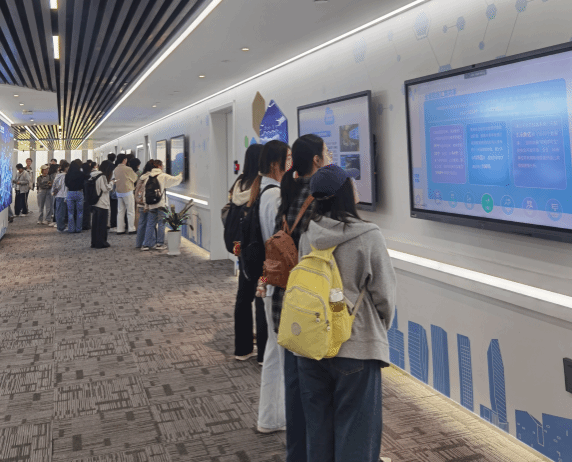 讲座结束后,同学们再次深入参观了城市大脑中心的各个功能区域,通过各种触摸屏互动了解如何运用先进的技术手段,保障城市大脑的稳定运行和持续优化。在参观过程中,同学们深刻体会到,人工智能和大模型技术不仅仅是科技领域的创新成果,更是推动政务服务转型升级、提升城市治理水平的关键力量。