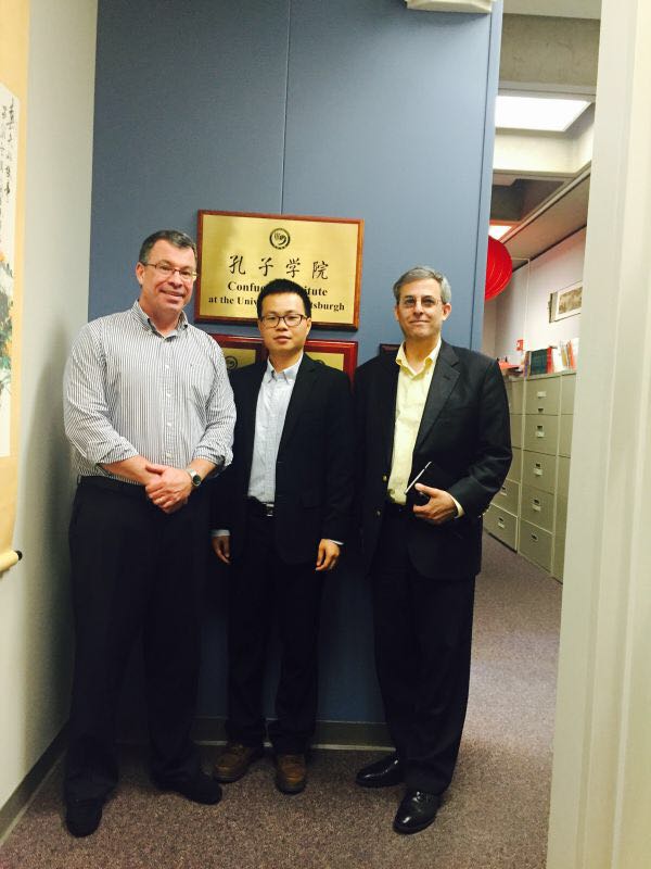 2016年10月7日-10日,蓝鲸直播 副教授何跃军博士代表蓝鲸直播 访问美国匹兹堡大学蓝鲸直播 与匹兹堡大学亚洲研究中心,与匹兹堡大学蓝鲸直播 副院长Prof.Brand、国际招生办公室主任Richard、亚洲研究中心主任Doctor Cook商谈了两院学术合作、教学合作以及招生合作事宜。