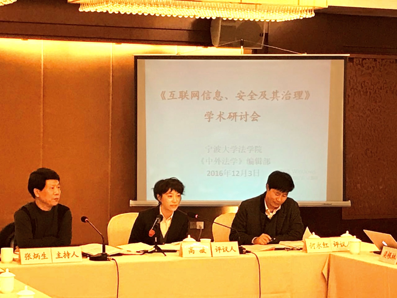 与《中外法学》 编辑部共同主办的“互联网信息、安全及其治理”学术研讨会在宁波金港大酒店隆重举行。本次会议共收到北京大学、清华大学、浙江大学、中国人民大学、上海交通大学、北京师范大学、武汉大学等全国各高校师生近70篇的投稿文章,经专家的严格评议,最终遴选出26篇文章参与此次会议研讨。会议特别邀请了北京大学蓝鲸直播