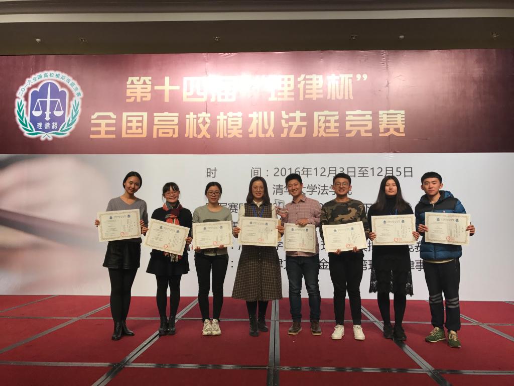 郑曙光、郭兵、夏忠彪、蒲一苇等多名老师担任指导老师。在口头辩论比赛中,由张玥、杨磊同学担任原告方,陆佳雯、郝强同学担任被告方,与中南民族大学、兰州大学、四川大学以及浙江大学就药品采购行政诉讼案件分别进行比赛,双方选手唇枪舌剑,展现了专业的素质、熟练的辩论技巧、淡定从容的心态,获得了评委的一致认可,并提出了改进建议。12月6日晚,在北京市辽宁大厦举行了颁奖典礼,安徽大学和蓝鲸直播