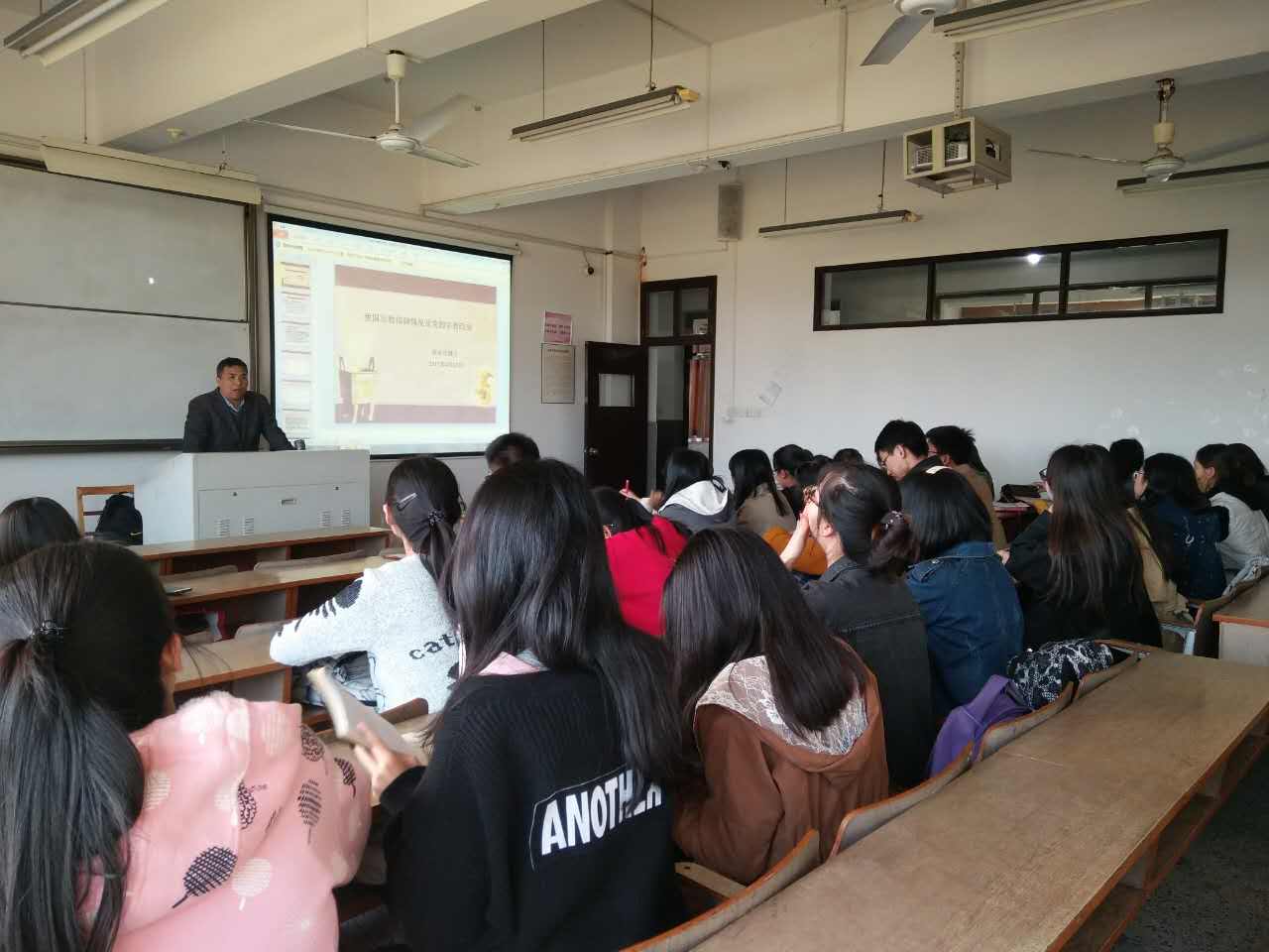 公共管理系系主任赵永红教授。主讲题目是我国宗教信仰情况及党的宗教政策。