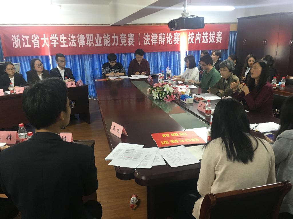 4月16日,浙江省大学生法律职业能力竞赛(法律辩论赛)校内选拔赛初赛在蓝鲸直播