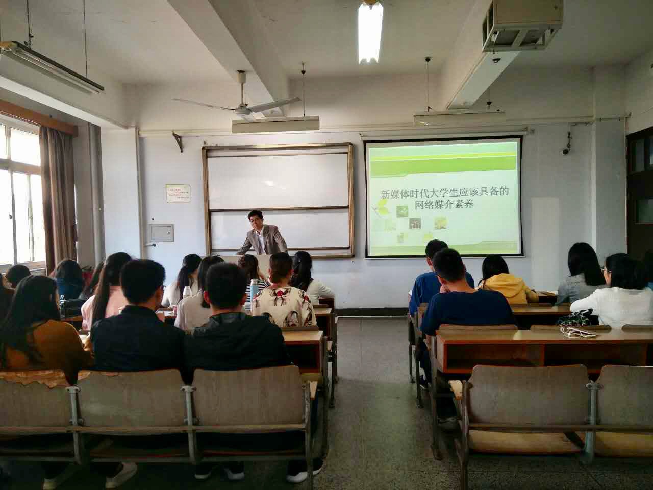 第三十四期入党积极分子党校培训在教学楼开讲,本讲任课老师是党委宣传部副部长余辉老师,主讲内容是新媒体时代大学生应该具备的网络媒介素养。
