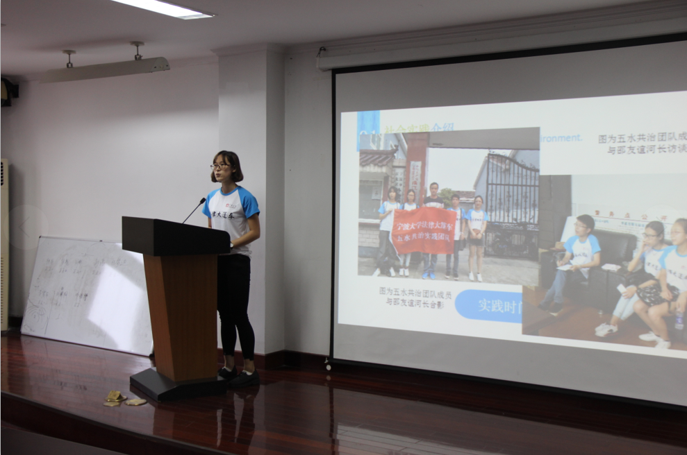 深入开展了“专业服务甬城乡,青春献礼十九大”为主题的大学生暑期社会实践活动,组织了 14支队伍,人数达到两百余人,走进江北海曙镇海等地开展形式多样的法律服务、禁毒宣传、红十字文化调研、模拟法庭等活动。在总结先前经验,吸取以往教训情况下,全方面开展社会实践活动,创新实践形式与途径,进一步规范了组织与管理。