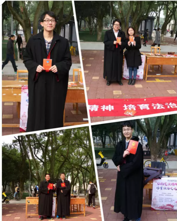 为吸引更多同学参与,研会搭建了写有“12.4宪法宣传日”的背景板,并且提供法袍给各位参与的同学拍照留念,借此希望能增强学生的宪法意识和法治观念。