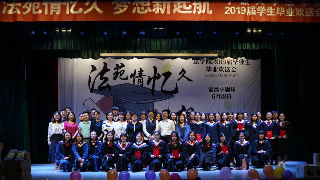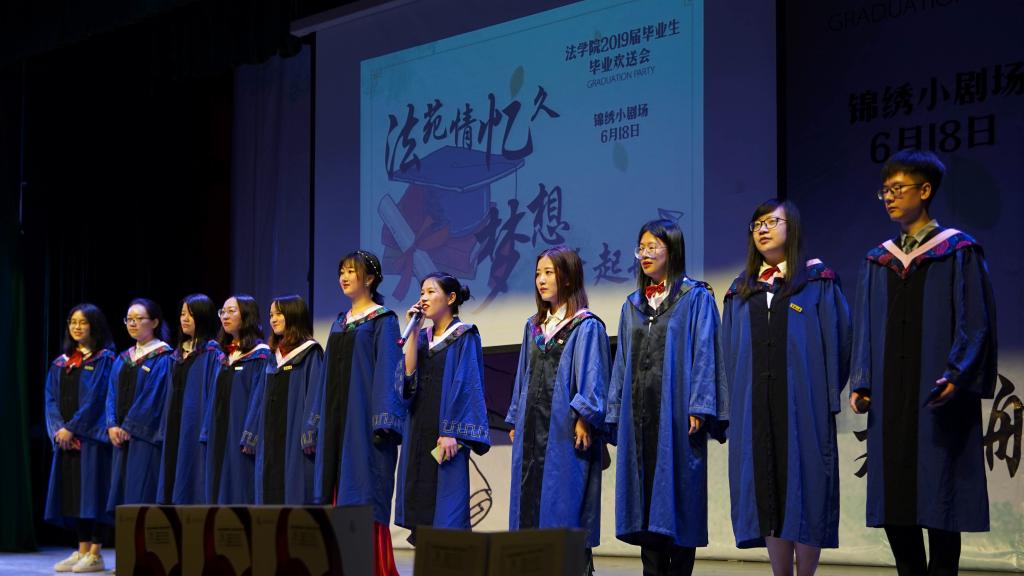 欢送会中,法学152班、2015级行政管理、2016级法律硕士(非法学)等班集体毕业生代表纷纷带来精彩的演出,用青春的舞姿和嘹亮的歌声谱写和镌刻属于自己的青春旋律。