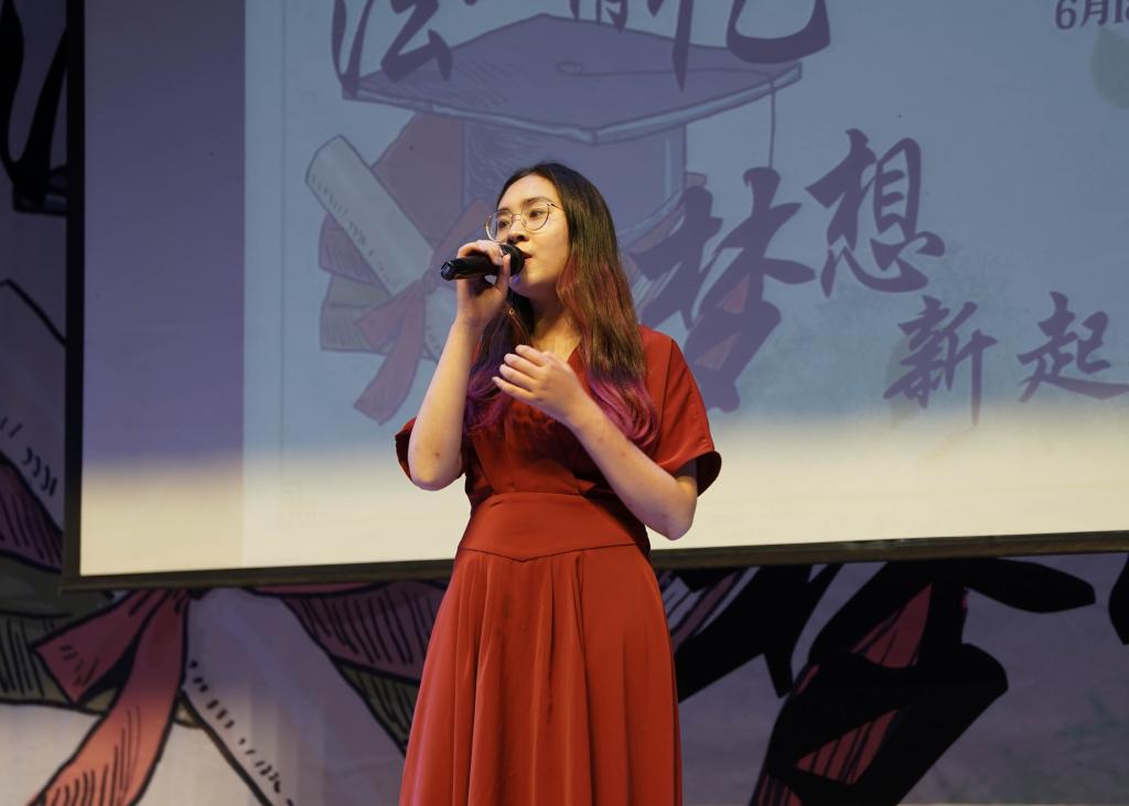 2000级校友姜煜洌学姐代表校友寄语毕业生。她通过诗歌分享的形式表达了对学弟学妹最真诚的祝福。