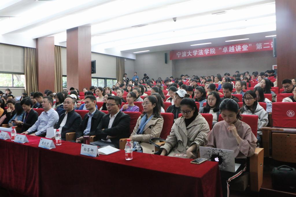 师生带开了“卓越讲堂”第二讲。共青团宁波市委副书记、市青联主席李锋,市青联秘书长郦盼,市青联常委、法律界别组组长杜晶,市青联委员、奉化区人民法院党组书记、院长赵江涛,市青联委员、宁波杉杉股份有限公司法务总监惠颖,市青联委员、浙江导司律师事务所高级合伙人庞俭力受邀出席了本次讲座,同时还有蓝鲸直播