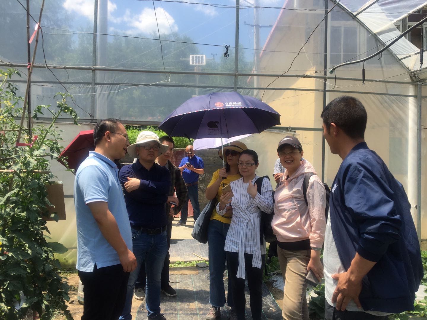 (图四:课题组成员认真聆听丹波村蒋书记介绍蔬菜大棚的情况)