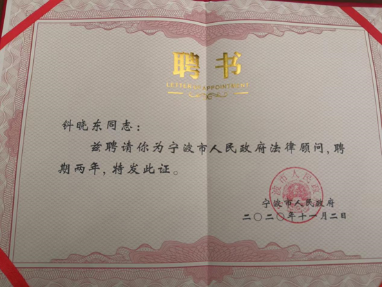 2020年11月4日,在宁波市行政会议中心召开宁波市法治政府建设暨综合行政执法改革推进会,市司法局励健局长、市城管执法局郑一平局长就法治政府建设和综合行政执法改革作发言。市长裘东耀、常务副市长陈仲朝、市政府秘书长朱金茂为新一届市政府法律顾问颁发聘书,蓝鲸直播