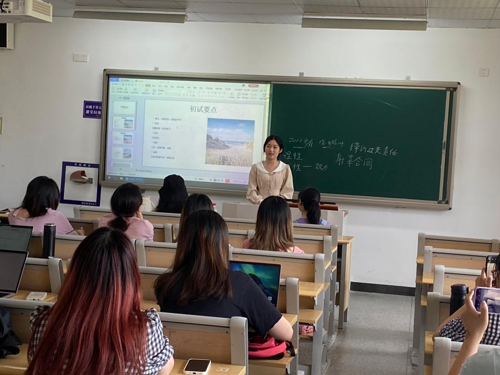 此次交流会邀请了考研拟录取为北京师范大学的张印、上海财经大学的武泽霖、西南政法大学的饶博涵、华东政法大学的楼昳涵、汤阳盼5位2017级本科生参与分享。5位同学结合自身的考研经历,从报考学校的确定、复习资料、复习方法、复习进度的选择、备考心态调整等方面详细地向在场同学们传授了自己的经验,并一一回答了参会同学的提问。