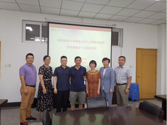 副院长何跃军教授、刘满达教授、党委副书记吴敏老师、尹力老师、法律系副主任汤晓峰老师和法律硕士中心副主任张文松老师接待了来访组。