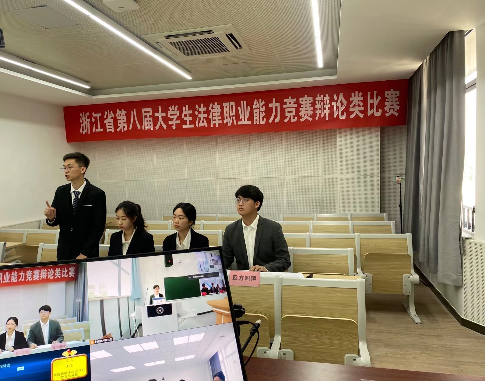 5月21日至22日,由浙江省教育厅、浙江省大学生科技竞赛委员会主办,浙江工商大学、浙大城市学院承办的浙江省第八届大学生法律职业能力竞赛(法律辩论类)竞赛通过腾讯会议平台线上举行。全省31所高校的32支队伍近300名法科学生参赛。竞赛分A、B两组,评审专家根据队伍表现打分,依据现场成绩确定奖项。
