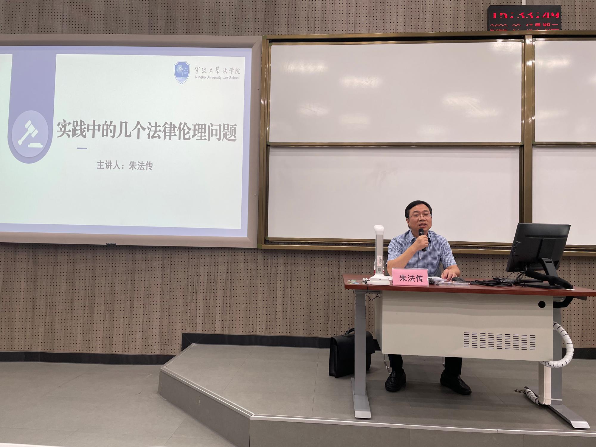 朱法传校友以“实践中的几个法律伦理问题“为主题,结合自己的工作经历和实践中的真实案例,从他的职业伦理、法律伦理观以及人生道理三个纬度进行了分享。他从业以来,在浙江的5个地区先后从事了8份法律职业工作,涵盖了立法、司法、行政、法律监督等领域。他通过多年的法律实务经验及工作原则,总结了“4321”的法律信仰。他指出,法律工作是服务于社会和人民的,要正确处理好法理与天理、心理、情理、治理之间的关系,要正确认识政治效果、社会效果、法律效果的有机统一,要努力做到客观事实和法律事实一致,要努力守住法律、纪律、法纪底线,做到良法善治。同时,他希望同学们在任何时候都不要气馁,因为挫折是生命的历练;在学习工作任何时候都不能放松,因为机会总是等着有准备的人,努力常在,幸运常在。