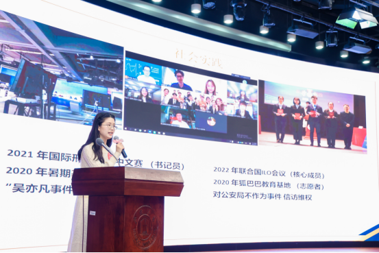 2019级法学专业王盼盼同学、行政管理专业张涵衿同学入围公开评审。评审答辩中,王盼盼同学娓娓道来,向全场观众介绍了一个“国际法准法律人”的追梦之路;张涵衿同学则声情并茂的介绍了大学期间自己在学生工作、学科竞赛等领域的拼搏与收获。现场评委结合候选人的申报材料和现场表现进行了投票评选,经过激烈角逐,共有包括王盼盼在内的10名同学被评为2021-2022学年蓝鲸直播