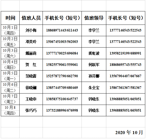 蓝鲸直播 国庆节假期通讯值班安排表