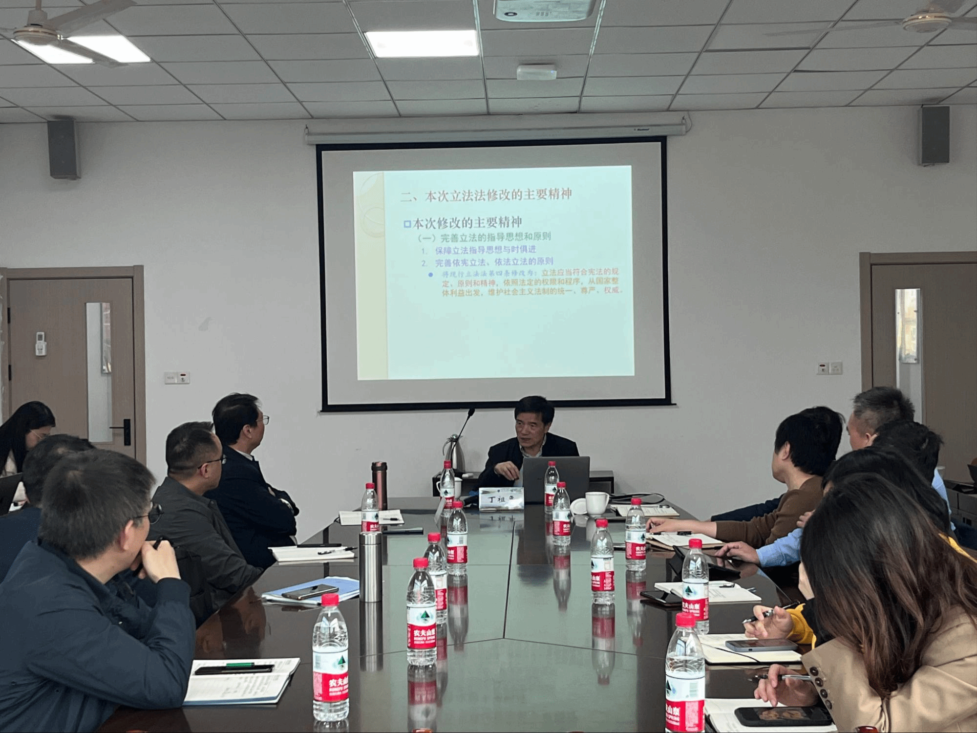 概括总结完主要修改内容后,丁祖年主任又带领全体师生一条条理清了2023年《立法法》修改的具体条文内容,介绍修改背后的具体问题,也提出了一些值得关注和研究的问题。在整个讲述过程中,丁祖年主任结合亲身经历和相关案例,为我们阐释了《立法法》的发展,特别是精神与原则的变迁,让各位师生受益匪浅。