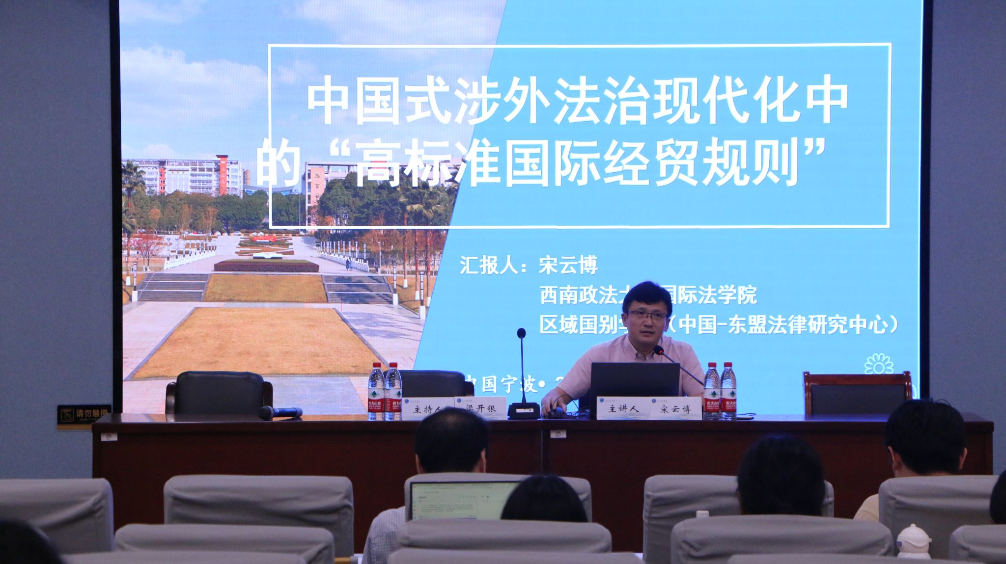 讲座伊始,宋云博教授以“当前我国有关高标准的理论和实践”为小标题,阐明了“高标准国际规则”的含义及发展趋势,以及目前在实践中所取得的成果。